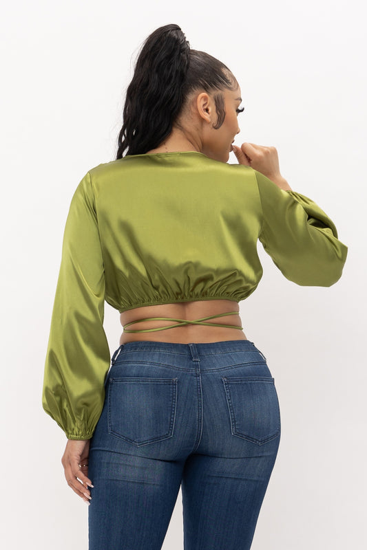 Story Of Love Front Wrap Tie Top Olive