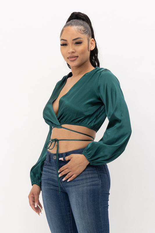 Story Of Love Front Wrap Tie Top Hunter