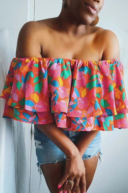 Sweet Soul Floral One Shoulder Ruffle Top